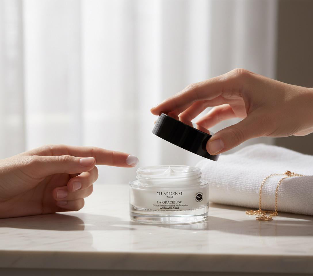 Musaderm défend une approche experte du soin : traiter intelligemment sans agresser. La Gracieuse accompagne la peau vers un équilibre plus sain, en préservant son hydratation naturelle.